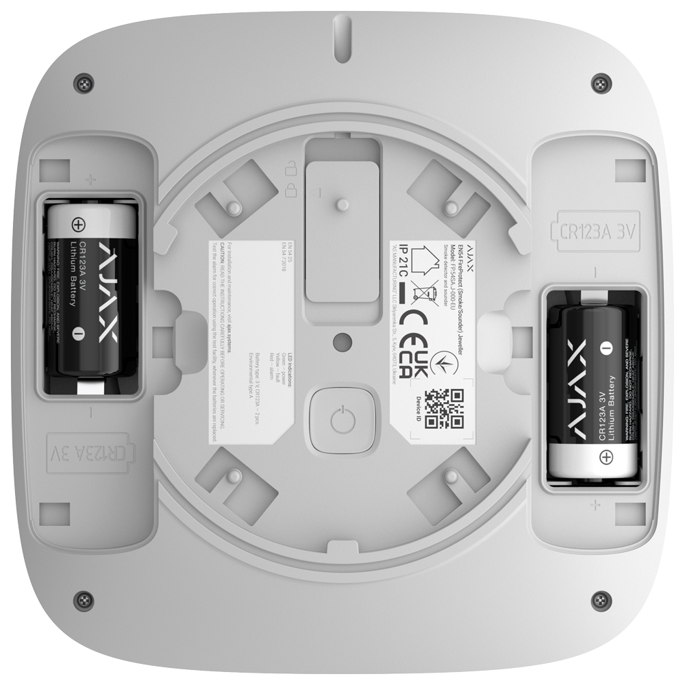 Le AJ-EN54-SMOKE-SOUNDER-W est un détecteur de fumée sans fil Ajax certifié EN54, combinant capteur optique de fumée et sirène intégrée pour une alerte sonore immédiate.