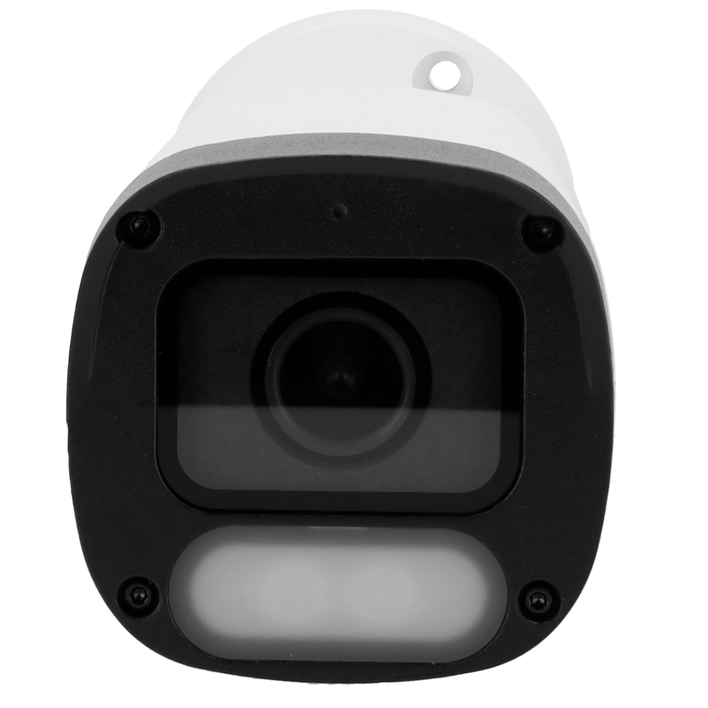 Caméra IP bullet 4 MP, objectif fixe 2,8 mm, vision couleur 24/7 grâce à ColorHunter, éclairage LED blanche jusqu’à 30 m, WDR 120 dB, boîtier IP67, alimentation PoE.